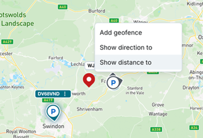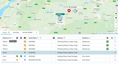 · The system will calculate the straight-line distance between the selected point and all ACTIVE assets in your fleet.